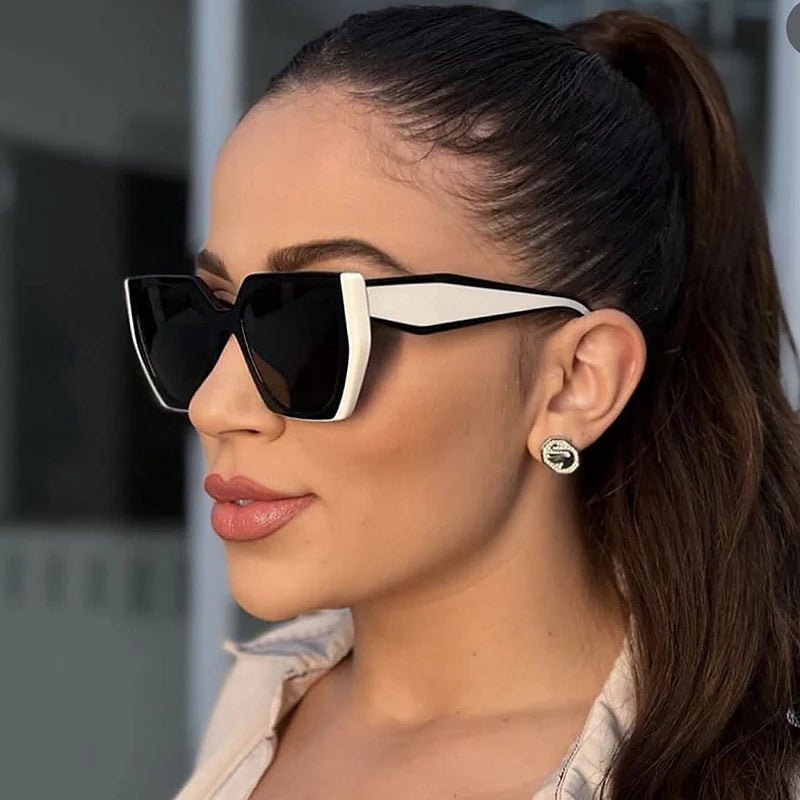 With an oversized angular frame and sculpted wide arms, these sunglasses make a confident statement. The patterned acetate finish adds character, while UV400 lenses keep your eyes protected.