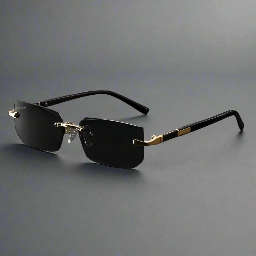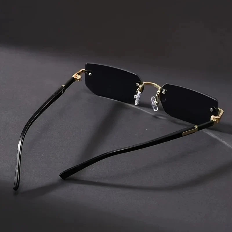 Minimalist yet luxurious, these sunglasses offer a featherlight frame and shimmering gold accents. UV400 lenses protect your eyes while the rimless square shape adds an edge of sophistication.