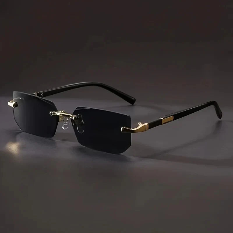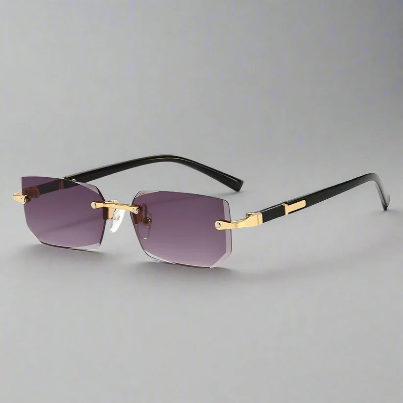 Minimalist yet luxurious, these sunglasses offer a featherlight frame and shimmering gold accents. UV400 lenses protect your eyes while the rimless square shape adds an edge of sophistication.