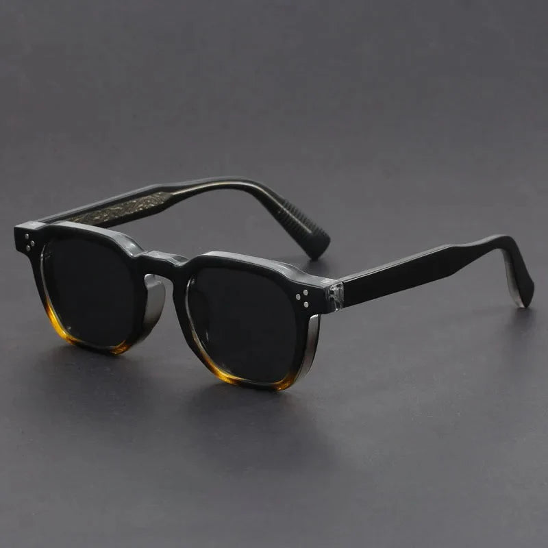 Elevate your style with these timeless square sunglasses, designed to blend retro charm with modern sophistication. The bold frame and gradient amber accents make a striking statement, while the dark lenses protect your eyes from harmful UV rays. Perfect for those who value both functionality and fashion.